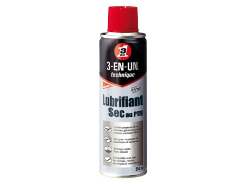3-EN-UN Technique Lubrifiant Sec au PTFE 250ml. Fortement dosé en PTFE, Aspect (après séchage) : film sec blanchâtre Densité : 0,592 g/ml (aérosol)